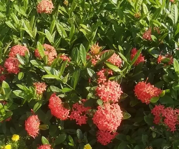 龙船花繁花时节,红似火、橙如霞,花浮于叶面上,且花期长,花色丰富,有红、黄、橙、白等,因而在园林中常大面积片植成带状,在道路旁或车道中间的隔离带,地植成大色块,非常有气势、非常状观,随着季节和花色的不同,呈现给人们的是彩色花带。适宜作花带的品种有矮龙船花系列。在空旷和平坦的地段,片植成跳跃式大色块,是园林绿化中常用的手法。 龙船花 观赏种植