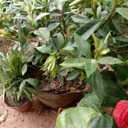 条圆柱形,嫩枝、叶具毛茸,茎枝多木化。单叶对生,叶片椭圆形,长可达12cm,先端渐尖,基部楔形,全缘,叶脉于下表面微突起。质较厚。有时可见花或果实。花淡黄棕色或类白色,高脚碟状。果实纺锤形,皱缩,长3.5-6cm,直径约3cm,橙黄色,顶端具短尖。气微,味微苦。