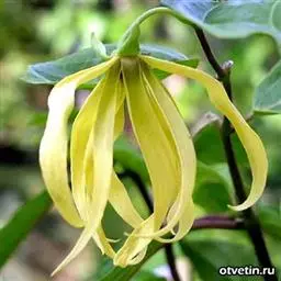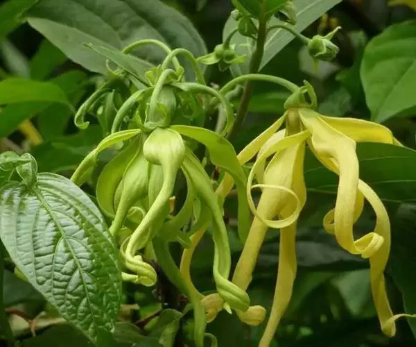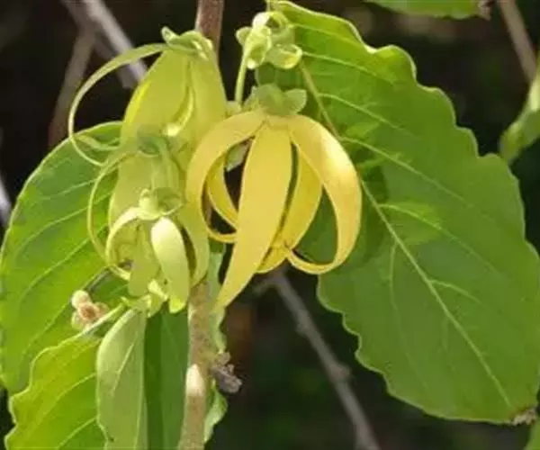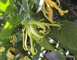 依兰(学名:Cananga odorata (Lamk.) Hook. f. et Thoms. )是番荔枝科,依兰属常绿大乔木,高可达20米,树干通直,树皮灰色;叶大,膜质至薄纸质,叶片卵状长圆形或长椭圆形,叶面无毛,叶背仅在脉上被疏短柔毛;上面扁平,下面凸起;花序单生于叶腋内或叶腋外,花大,黄绿色,芳香,花梗被短柔毛,有鳞片状苞片;萼片卵圆形,外反,绿色,花瓣线形或线状披针形,雄蕊线状倒披针形,果近圆球状或卵状,黑色。4-8月开花,12月至翌年3月结果。