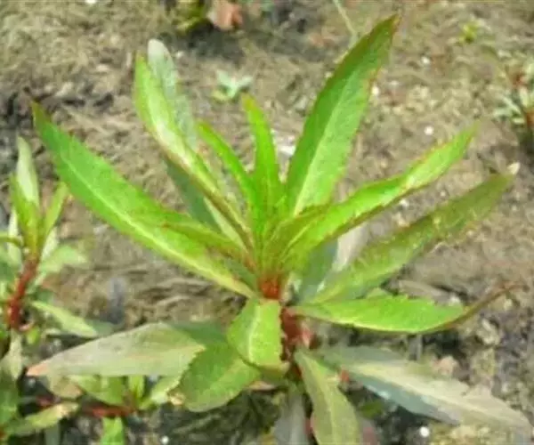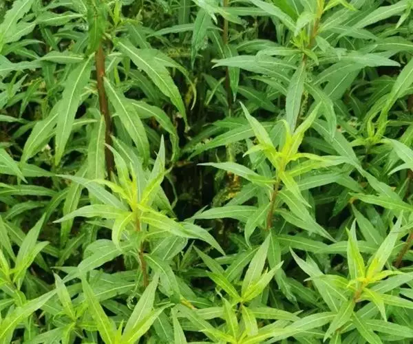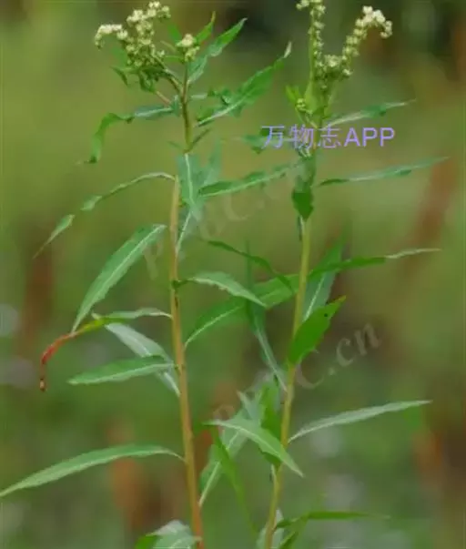 多年生草本,高40-65(-90)厘米。根状茎分枝;茎不分枝,稀基部分枝,具多数叶,中下部无毛,上部疏生黑褐色腺毛。叶互生,无柄或近无柄,披针形至狭披针形,长4-10厘米,宽0.4-1.2厘米,先端渐尖,边缘具细重锯齿,无毛。
