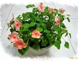 此外,最好在打顶后立即喷施F lorel ,否则会延缓植株开花。温湿度新几内亚凤仙喜温暖湿润的环境,在23℃时长势最好,温度大于26℃,叶片和花明显缩小;温度17℃,植株生长非常缓慢。控制植株生长的是植物体内的温度而非温室温度,植株温度要比空气温度多。温室内的空气相对湿度越低,植株体内温度就越低,其生长也就越缓慢,开花越迟。通过向温室施水蒸气,保持较高的相对湿度,可以加速植株的生长。研究发现,室内相对湿度大于75%时,植株与空气温度的差异在2℃至3℃之间。