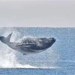 座头鲸,又名大翅鲸、驼背鲸、巨臂鲸,属于须鲸亚目的海洋哺乳动物(学名:Megaptera novaeangliae,又名humpback whale),其“座头”之名源于日文“座头”,意为“琵琶”,指鲸背部的形状。为热带暖海性鲸类。身体较短而宽,一般长达13~15米。座头鲸以其跃出水面姿势、超长的前翅与复杂的叫声而闻名。活动时多一双一对活动,性情温顺,有洄游习性,惟游泳速度较慢。主食为小甲壳类和群游性小型鱼类。