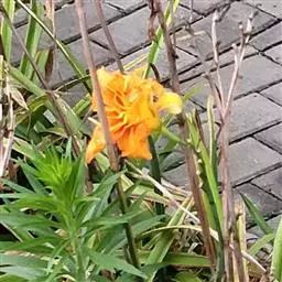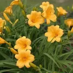 金娃娃萱草(学名:Hemerocallis fulva ‘Golden Doll’):是萱草的人工栽培的园艺品种。地下具根状茎和肉质肥大的纺锤状块根。叶基生,条形,排成两列,长约25厘米,宽1厘米。株高30厘米,花莛粗壮,高约35厘米。螺旋状聚伞花序,花7至10朵。花冠漏斗形,花径约7至8厘米,金黄色。花期5至11月(6至7月为盛花期,8至11月为续花期),单花开放5至7天。