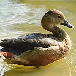 栗树鸭体长37-42厘米,体重400-600克,是中等体型的红褐色鸭。头顶深褐,头及颈皮黄色,…