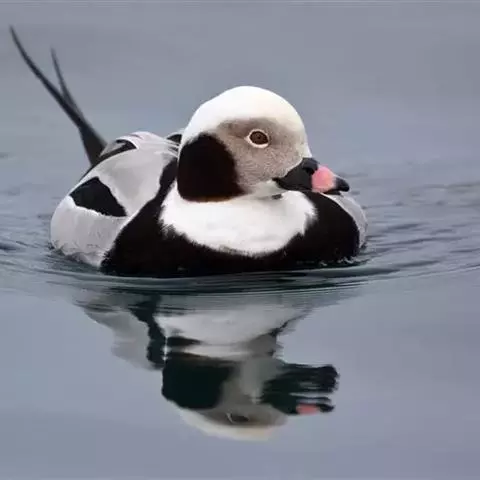 虹膜褐色;嘴灰色;脚蓝灰。雌鸟和幼鸟表面上类似赤颈鸭。不同的形态和色彩变化实在太微妙,是难以确认身份的群体,它们常常一起飞行。训练有素的眼睛,红色的胸部,颈部和两侧的灰色及额头上部明亮白色,对比其他种类较易区别。