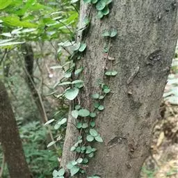 蔓九节是茜草科九节属的攀援或匍匐藤本植物。常以气根攀附树干或岩石;幼枝无毛或有粃糠状柔毛;幼树叶卵形或倒卵形,托叶膜质;圆锥状或伞房状聚伞花序顶生,苞片和小苞片线状披针形,花萼倒圆锥形,花冠白色,冠筒与裂片近等长,裂片长圆形;浆果状核果球形或椭圆形;花期4-6月;果期全年。因叶片紧贴着树干往上生长,宛如一条青龙上树,故又名“上树龙”。蔓九节分布在中国浙江、福建、台湾等省地,在日本、朝鲜、越南等国也有分布,生长在海拔70-1360米的平地、丘陵、山地、山谷水旁的灌丛或林中。喜温暖湿润,不耐寒,耐荫,适宜选用排水良好、富含有机质的砂质土壤。蔓九节在《世界自然保护联盟濒危物种红色名录》中属于无危。繁殖方法一般为扦插、压条、播种繁殖。据《福建药物志》中记载蔓九节“有祛风除湿,舒筋活络的功效。主治风湿关节痛,头风痛,手足麻木坐骨神经痛,腰肌劳损,
