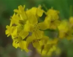 花序伞房状,果期伸长;萼片直立,早落,长圆条形,背面有分叉细柔毛;花瓣黄色,长圆状倒卵形,长2-2.5毫米,或稍短于萼片,具爪;雄蕊6枚,比花瓣长三分之一。