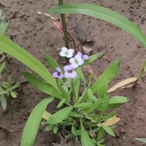长角果圆筒状,长2.5-3厘米,宽约1毫米,无毛,稍内曲,与果梗不成1条直线,果瓣中脉明显;果梗长1-2厘米。种子每室1行,种子形小,多数,长圆形,长约1毫米,稍扁,淡红褐色,表面有细网纹。花期4-5月。
