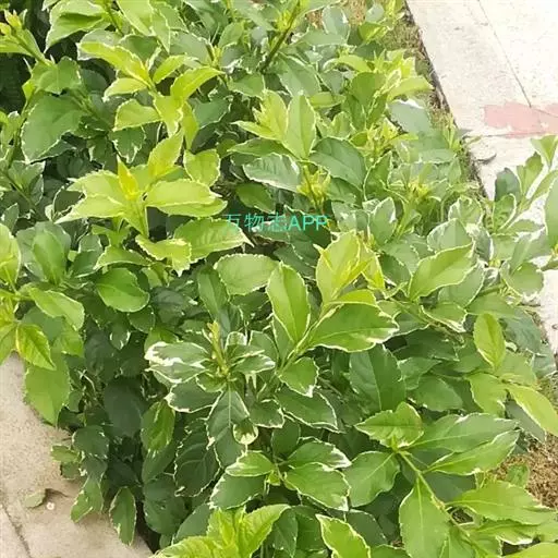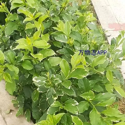 常绿灌木或小乔木。株高1~3m,枝下垂或平展,茎四方,绿色至灰褐色。 花叶假连翘 叶对生,卵状椭圆形或倒卵形,长2~6cm,中部以上有粗刺,纸质,绿色。