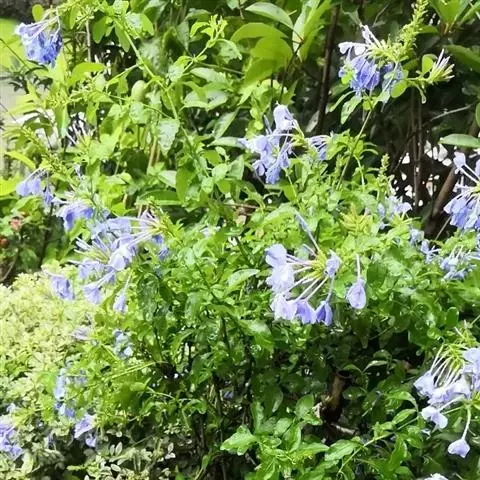 蓝花丹是白花丹科、白花丹属的常绿亚灌木。高约1米;叶薄,呈菱状卵形至狭长卵形;穗状总状花序,总花梗短,…