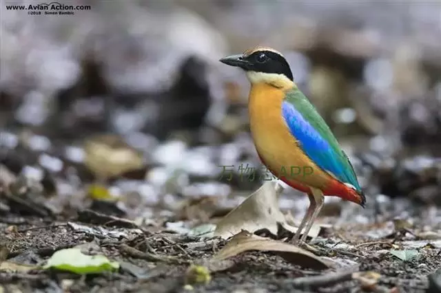 蓝翅八色鸫是雀形目八色鸫科的鸟类。体长17-20厘米,体重类约48-70克,体型圆胖,尾短,腿长,以身体具有红、绿、蓝、白、黑、黄、褐、栗等鲜艳夺目,丰富艳丽的色彩而得名,是很有观赏价值的鸟类。主要栖息于海拔200 米以下的平坝和丘陵落叶很厚的各种类型的树林中,也见于林缘溪流边的灌丛和小树上,田坝区的榕树和村寨边的小树上,以及竹林等环境。常在森林底层或低植被中找食无脊椎动物。叫声简单哀婉。主要以甲虫、白蚁、鳞翅目、鞘翅目的昆虫和蚯蚓、蜈蚣等小动物为食。分布于中国西南部、东南亚;越冬于马来半岛、苏门答腊及婆罗洲。