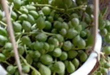 翡翠珠,是菊科千里光属的多年生常绿肉质草本植物。茎纤细,全株被白色皮粉;叶互生,较疏,圆心形,深绿色,肥厚多汁;头状花序,顶生,长3-4厘米,呈弯钩形,花白色至浅褐色;花期12月~翌年1月。…全部>>