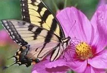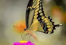 金凤蝶,是鳞翅目凤蝶科凤蝶属动物。金凤蝶为中型凤蝶,翅展70-84毫米,翅背面底色黑褐色,翅脉黑色,翅室具黄斑;前翅背面基部呈暗黄色,亚外缘为黑色,内具一列小黄斑;后翅背面亚外缘区具黑宽边,…全部>>