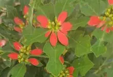 猩猩草:常绿或半常绿灌木,盆栽时株高0.5米-2米,在亚热带地区可长到6米以上。茎直立而光滑,单叶互生,卵状椭圆形至阔披针形,具不规则的深缺刻。长10-15厘米。花小,有蜜腺,排列成密集的伞房花序。…全部>>