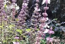 紫罗勒,Ocimum basilicum ‘Purple Ruffles’,英语名字 :Basil,唇形科罗勒属植物。叶色独特,适于庭植、花坛构成色彩变化或盆栽。叶片可当蔬菜食用,也可冲泡花草茶,…全部>>
