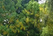 腊肠树:是豆科腊肠树属植物。落叶乔木,高可达15米;枝细长;树皮灰色,老时粗糙,暗褐色。叶长30-40厘米,小叶对生,薄革质,阔卵形,卵形或长圆形,边全缘,幼嫩时两面被微柔毛,老时无毛;叶脉纤细,…全部>>