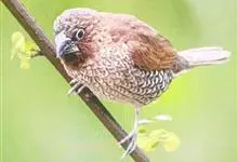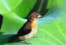 栗腹文鸟:小型鸟类,体长10-12厘米。嘴蓝灰色,基部粗厚,先端尖、呈圆锥状, 脚亦为蓝灰色,整个头、颈和上胸黑色,其余体羽栗色,或下胸和腹中央至尾下覆羽黑色。尾栗红色。全部>>