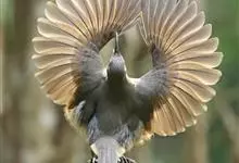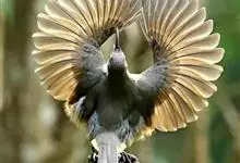琴鸟,是雀形目琴鸟科琴鸟属底栖型鸟类。体型较大,通体浅褐色;雄鸟有长达70厘米,宽3.5厘米的竖琴形美丽尾羽,最外侧的尾羽先端外卷成弧形,上缀金褐色冠状斑;边缘黑色,…全部>>