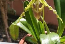 虎斑兜兰兰科,兜兰属地生或半附生植物。叶基生;数枚至多枚,叶片带形、革质。花葶从叶丛中长出,花苞片非叶状;子房顶端常收狭成喙状;花大而艳丽,有种种色泽;中萼直立,花粉粉质或带粘性,退化雄蕊扁平;柱头…全部>>
