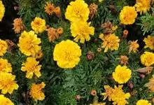 万寿菊是菊科万寿菊属一年生草本植物,别名孔雀菊、缎子花、臭菊花、西番菊、红黄草、小万寿菊、臭芙蓉、孔雀草。万寿菊茎近基部分枝。叶羽状分裂,长5-10厘米,宽4-8厘米,裂片长椭圆形或披针形,具锐齿,…全部>>