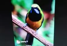 橙腹叶鹎体形大小和金额叶鹎相似,体长16~20厘米。额至后颈黄绿色,其余上体绿色,小覆羽亮钴蓝色,形成明显的肩斑。颏、喉、上胸黑色具钴蓝色髭纹,其余下体橙色。飞羽和尾羽雄鸟黑色、雌鸟绿色。…全部>>