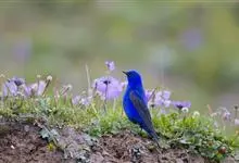 蓝大翅鸲是鹟科、大翅鸲属小型鸟类,体长19-21厘米。两翅尖长。雄鸟通体鲜紫蓝色具金属光泽。两翅和尾黑色。雌鸟上体灰褐色,头、颈、翕具棕白色纵纹,翅上有白色翅斑。虹膜暗褐色,嘴、脚黑色。…全部>>