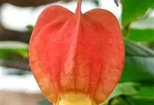 红萼苘麻是锦葵科、苘麻属常绿软木质灌木,叶绿色,长5-10厘米,心形,叶端尖,叶缘有钝锯齿,有时分裂,有细细的叶柄;叶互生,掌状叶脉;花单生于叶腋,具长梗,下垂;花萼红色,半套着大约4厘米长的花瓣,…全部>>