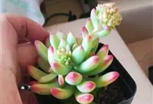 乙女心是景天科景天属的多肉植物,原产墨西哥。多年生亚灌木,茎叶肉质,株高5-30厘米。叶片簇生于茎顶,圆柱状,淡绿色或淡灰蓝色,叶先端具红色,叶长3~4厘米。花小,黄色。春秋为生长季,…全部>>