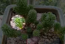 小松绿是景天科景天属植物,多肉植物,植株低矮,多分枝,株型近似球状,新枝浅绿色,以后逐渐转为灰白色,肉质叶近似针状。枝条下部的老叶容易干枯,贴在枝干上,形成类似松树皮般的龟裂,数月才脱落,…全部>>