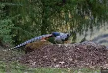 雉鸡:鸟纲、雉科、雉属的一种走禽,共有30个亚种。体形较家鸡略小,但尾巴却长得多。雄鸟和雌鸟羽色不同,雄鸟羽色华丽,多具金属反光,头顶两侧各具有一束能耸立起而羽端呈方形的耳羽簇,…全部>>