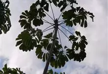 昆士兰伞木,吕松鹅掌柴 ,称昆石兰遮树,澳洲鸭脚木、方式叶鹅掌柴、伞树、大叶伞。叶片阔大,柔软下垂,形似伞状,株形优雅轻盈,易于管理,适于客厅的墙隅与沙发旁边置放,是室内理想的观叶植物。但目前多由…全部>>