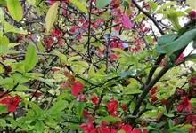 贴梗海棠Nakai)是蔷薇科、木瓜海棠属植物。落叶灌木,高达2米,枝条直立开展,有刺。叶片卵形至椭圆形,稀长椭圆形,长3-9厘米,宽1.5-5厘米。花先叶开放,3-5朵簇生于二年生老枝上。…全部>>
