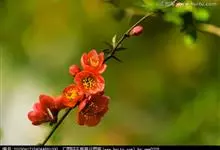 贴梗海棠 Nakai)是蔷薇科、木瓜海棠属植物。落叶灌木,高达2米,枝条直立开展,有刺。叶片卵形至椭圆形,稀长椭圆形,长3-9厘米,宽1.5-5厘米。花先叶开放,3-5朵簇生于二年生老枝上。…全部>>