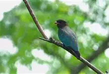 三宝鸟,是佛法僧目佛法僧科三宝鸟属中小型攀禽。成鸟通体为富有光泽的墨蓝绿色,头大而头顶扁平;头部色深近紫黑色,上体至尾泛有铜绿光泽;两翼有幽蓝金属光,初级飞羽黑褐色;羽基淡石青色,形成大块淡蓝,…全部>>