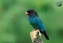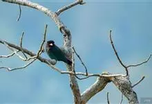 三宝鸟,是佛法僧目佛法僧科三宝鸟属中小型攀禽。成鸟通体为富有光泽的墨蓝绿色,头大而头顶扁平;头部色深近紫黑色,上体至尾泛有铜绿光泽;两翼有幽蓝金属光,初级飞羽黑褐色;羽基淡石青色,形成大块淡蓝,…全部>>