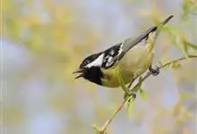 黄腹山雀是雀形目山雀科山雀属鸟类。虹膜褐色或暗褐色;嘴蓝黑色或灰蓝黑色;头、喉胸斑黑色,颊斑、颈后斑白色;上体蓝灰色,腰银白色;翼具两排白色点斑;下胸、腹鲜黄色;尾黑色,…全部>>