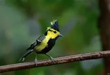 冕雀:共有4个亚种。体长20-21厘米,体重34-49克。具蓬松的黄色长型冠羽。雌鸟似雄鸟,但喉及胸深橄榄黄色,上体沾橄榄色。不会被误认的体大的黄色及黑色山雀。混群栖于原始林及次生林的林冠层,…全部>>