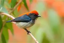 朱背啄花鸟:体重6-8克,体长81-97毫米。是一种小型的黑色及红色啄花鸟。雄鸟顶冠、背及腰猩红色,两翼、头侧及尾黑,两胁灰,下体余部白色。雌鸟上体橄榄色,腰及尾上覆羽猩红,尾黑。亚成鸟清灰色,嘴橘黄,…全部>>