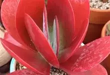 唐印为景天科伽蓝菜属的多年生肉质草本植物。植株中型,株高50厘米,宽20厘米,多分枝;叶片肉质,对生,卵形,全缘,先端钝圆,叶片淡绿色至灰绿色,表面被有厚厚的白粉,光照充足时,叶缘呈红色;圆锥花序,…全部>>