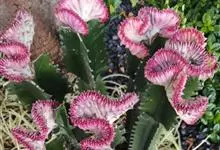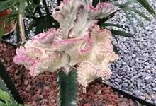 彩春峰是大戟科大戟属肉质植物,彩春峰的肉质茎依品种的不同有暗红色、乳白、淡黄及镶边、斑纹等复色。彩春峰的性状很不稳定,栽培中经常会发生色彩的变异,如暗紫红色肉质茎会长出白色黄色斑块等。…全部>>
