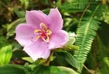 野牡丹:灌木,高0.5-1.5米,分枝多;茎钝四棱形或近圆柱形,毛扁平边缘流苏状。叶片坚纸质,卵形或广卵形,全缘,7基出脉,两面被糙伏毛及短柔毛。伞房花序生于分枝顶端,近头状,…全部>>