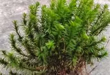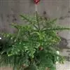 澳洲杉,常绿乔木,一般盆栽为幼树,高在2米以下。喜温暖、潮湿的环境,树冠尖塔形,深绿色。茎干直立,侧枝轮生,水平伸展。小枝二列互生,水平延伸或略下垂。叶有二型。球果近圆形。 全部>>