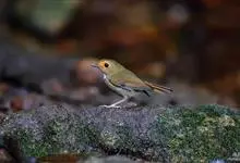 金色林鸲是鹟科、鸲属小型鸟类,体长12-15厘米。头顶至背黄橄榄绿色,眼先和头侧黑褐色,眉纹金橙黄色。肩、翅上小覆羽、腰、尾上覆羽和整个下体概为金橙黄色,两翅黑色。中央尾羽黑色,…全部>>