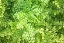 铁线蕨,铁线蕨科铁线蕨属多年生草本植物,其根状茎横走,披棕色披针形鳞片;叶片卵状三角形,顶端钝圆并有细锯齿,叶脉扇状分叉;孢子囊群生于囊群盖下面;无花,以孢子繁殖花色;分株繁殖为主,生长期均可,…全部>>