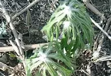 羊耳菊 Pruski & Anderberg)是菊科羊耳菊属的落叶灌木。根茎粗壮直立;分枝被污白色或浅褐色绳状或绵状密茸毛;单叶互生,叶片长圆形或长圆状披针形,边有小尖头细齿或浅齿,…全部>>