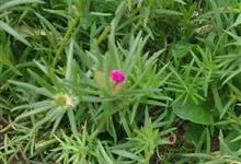 大花马齿苋:一年生草本,高10-30厘米。茎平卧或斜升,紫红色,多分枝,节上丛生毛。叶密集枝端,较下的叶不规则互生,叶片细圆柱形,无毛。花单生或数朵簇生枝端,直径2.5-4厘米,…全部>>