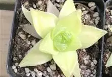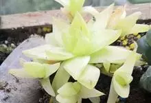 京之华锦是独尾草科瓦苇属的一种植物。也叫凝脂菊,为京之华的斑锦变异品种,植株群生,扁棒状三角形肉质叶排成莲座状,叶表平展,背部隆起,全叶有黄色或白色纵向缟纹,少数叶整片都呈黄色或白色。株型小巧,…全部>>