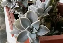 胧月 E.Walther)是景天科,风车草属多肉植物,常绿蔓生亚灌木,叶肥厚无柄,灰蓝色,阳光充足时呈粉红色,叶片枝顶簇生成莲座状,乳白色,花冠5裂,上有紫红色斑点,雄蕊两轮排列,花药鲜红色,…全部>>