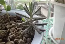棒叶落地生根是景天科、落地生根属植物。茎直立、粉褐色。叶圆棒形,上表面有沟、粉色,有红褐斑。叶片交互对生,交叉排列成十字形。叶端锯齿上长有很小的幼株、落地后即可生根成活。原产非洲马达加斯加。…全部>>