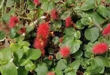 猫尾红为大戟科铁苋菜属常绿灌木,枝条呈半蔓性,株高10厘米至25厘米,能匍匐地面生长,若用吊盆栽培呈悬垂状。雌花短穗状,具绒毛光泽,鲜红色,形似猫尾,又像红色毛毛虫,商家称之为“岁岁红”,取其“岁岁…全部>>
